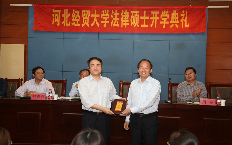 5月11日上午,我校在会议中心视频会议室举行2016级在职法律硕士开学典礼。校党委书记董兆伟,河北省司法厅党组副书记、副厅长王大为,河北省人民检察院副检察长何秉群,河北省人大法工委副主任周英,河北省人民政府学位办主任赵清云出席并致辞,校党委常委、副校长柴振国出席,研究生学院负责人等参加。典礼由437bwin必赢国际官网院长郭广辉主持。