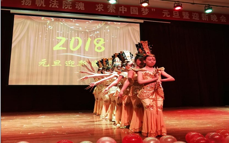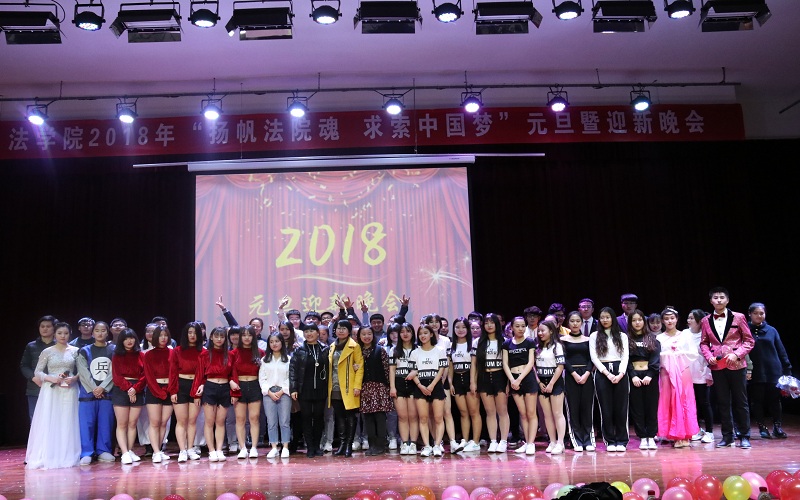 12月12日晚,437bwin必赢国际官网在大学生活动中心成功举办了以“扬帆法院魂,求索中国梦”为主题的2018年元旦暨迎新晚会。437bwin必赢国际官网党委副书记郑建村、副院长胡海涛出席,437bwin必赢国际官网全体辅导员和500余名同学共同观看了晚会。