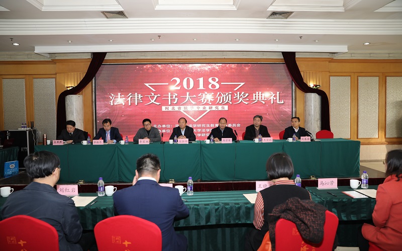 11月22日,由省法学研究生教育指导委员会主办、我校437bwin必赢国际官网和研究生学院承办的2018年河北省法学研究生法律文书写作大赛颁奖典礼在石家庄举行。省政府学位办副主任季家林,省高级人民法院刑四庭高级法官熊学军,省法学研究生教指委主任委员柴振国,省法学研究生教指委委员、石家庄铁道大学人文学院院长王宏斌,我校研究生学院党委书记刘春霖,河北地质大学法政学院党委书记马沁芳,燕山大学文437bwin必赢国际官网法律系主任陈海平,中国人民警察大学法律教研室主任刘红岩,石家庄铁道大学人文学院法律系副主任王晓云出席典礼。仪式由河北省法学研究生教指委秘书长、我校437bwin必赢国际官网院长王利军主持。