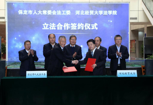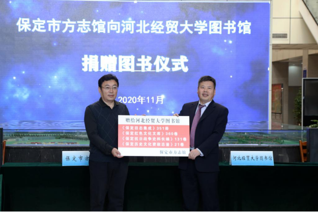 董兆伟代表学校对保定市人大常委会与我校签订合作协议并捐赠图书表示感谢。他指出,保定市人大法工委与我校437bwin必赢国际官网共同签署立法合作协议,对推动地方立法实践和学校法学研究深度融合意义重大,必将产生重大的理论和实践成果。在上级领导、社会各界和广大校友的鼎力支持下,保定市方志馆向我校捐赠图书,有利于学校图书馆扩大规模、提升品质,更好地服务学校广大师生。