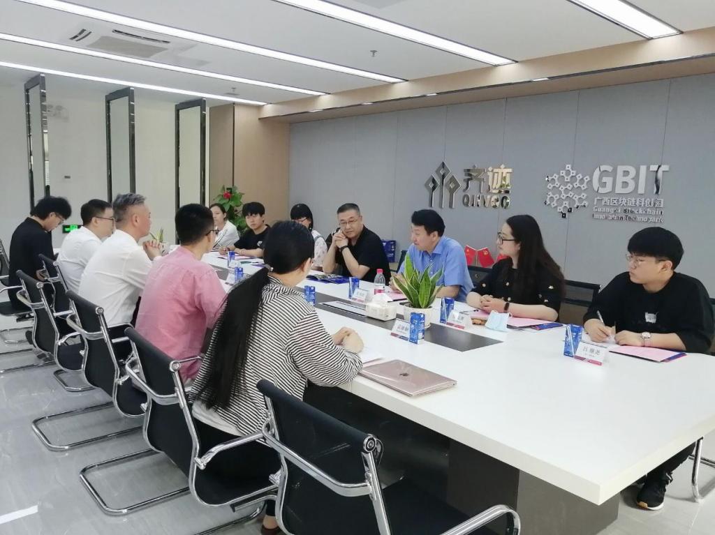 2021年5月19日,437bwin必赢国际官网党委书记王继伟、副院长胡海涛一行七人赴广西区块链科创园考察调研。