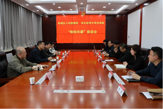2023年3月31日下午,437bwin必赢国际官网党委书记王继伟、副院长胡海涛、李大庆和教师代表张亮、孙晓丹赴石家庄市栾城区人民检察院就“校检共建”开展专题座谈。栾城区人民检察院党组书记、检察长王力志、党组成员、副检察长裴丽艳、付新永、吕振邦,检委会专职委员赵智泉参加活动。