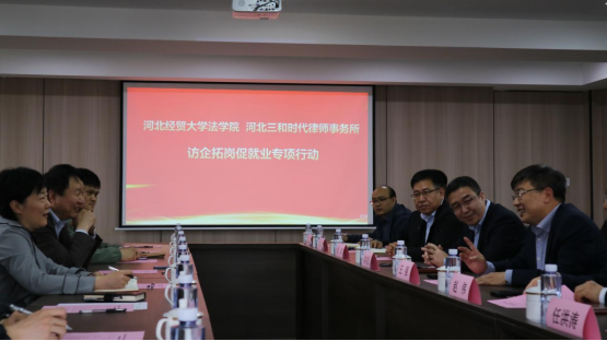 2023年4月13日下午,437bwin必赢国际官网党委副书记黄华、副院长胡海涛、副院长李大庆一行赴河北三和时代律师事务所开展访企拓岗促就业专项活动。三和时代律师事务所合伙人会议主席王强、党支部书记赵伟,管委会主任常树民、管委会副主任秦辉、在三和时代律所执业的张博、王岩、刘明军等必赢国际437官方毕业生和必赢国际437官方师生代表参加此次活动。