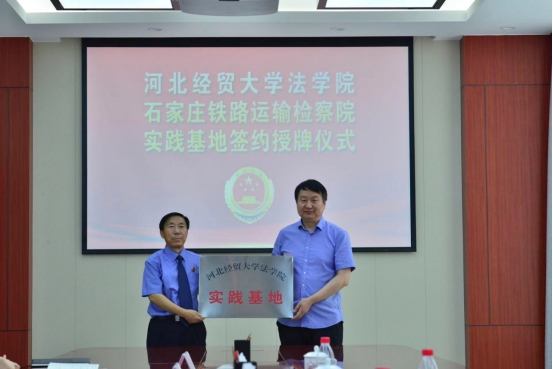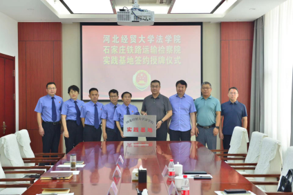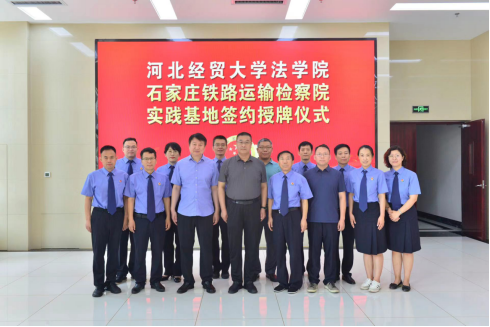 7月4日上午,437bwin必赢国际官网与石家庄铁路运输检察院实践基地签约授牌仪式暨座谈会在石家庄铁检院举行。学院党委书记王继伟、院长胡海涛、副教授张亮、专职组织员杨景一行,石家庄铁检院党组书记、检察长杨新义,党组副书记、副检察长王立红,党组成员、副检察长姜武勇、孙英,党组成员、政治部主任程周彪等院领导及部分校友参加活动,揭牌仪式由石家庄铁检院党组书记、检察长杨新义主持。