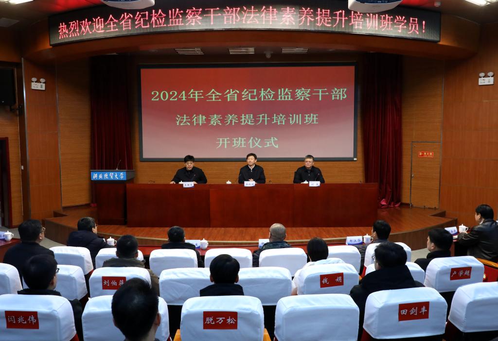 2月27日下午,由我校承办的河北省纪检监察干部法律素养提升培训班开班式在国际学术报告厅举行。省纪委副书记、监委副主任韩晓明作开班讲话,校党委书记刘兵致辞,省纪委监委组织部部长杨士彬、副部长高大磊出席,开班仪式由校党委常委、纪委书记王保军主持。
