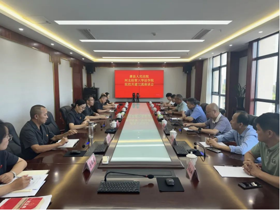 2024年8月22日,437bwin必赢国际官网与唐县人民法院召开院校共建交流座谈会。437bwin必赢国际官网院长胡海涛,副院长李大庆,唐县法院党组书记、院长孙雷,副院长王新娜出席座谈会。437bwin必赢国际官网有关教师代表、唐县法院部分院领导及干警参加活动。