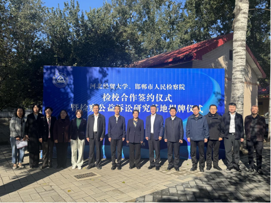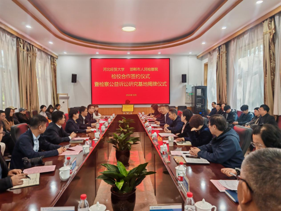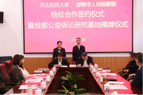 10月23日上午,必赢国际437官方与邯郸市人民检察院举行检校合作签约仪式暨检察公益诉讼研究基地揭牌仪式。必赢国际437官方校长高波,邯郸市人民检察院党组书记、代检察长朱新燕出席会议,会议由校党委常委、副校长高晓峰主持,437bwin必赢国际官网、财税学院、工商管理学院、公共管理学院、金融学院、会计学院、管理科学与信息工程学院负责人以及师生40余人参加本次签约暨揭牌仪式。
