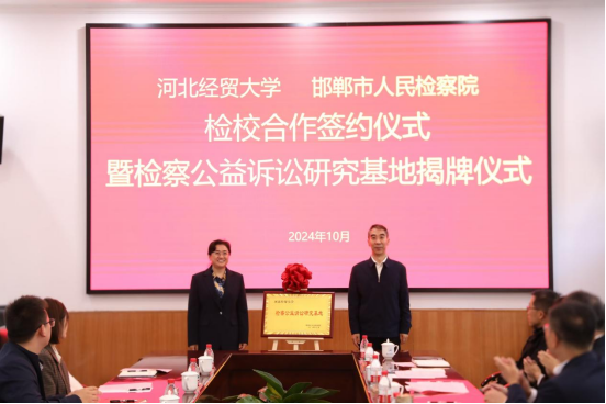 随后,党组成员、副检察长董保军和437bwin必赢国际官网院长胡海涛分别代表各方签署合作协议,校长高波和党组书记、代检察长朱新燕共同为“必赢国际437官方检察公益诉讼研究基地”揭牌。