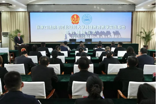 2024年10月25日,437bwin必赢国际官网与张家口市中级人民法院举行院校共建教育教学实践基地签约仪式,张家口市中级人民法院党组书记、院长李哲,党组副书记、常务副院长赵云峰,437bwin必赢国际官网党委书记黄华,院长胡海涛,副院长张亮,教授吕中行出席仪式,必赢国际437官方教师代表和张家口市中级人民法院各部门负责人参加活动。仪式由党组成员、副院长张弘主持。
