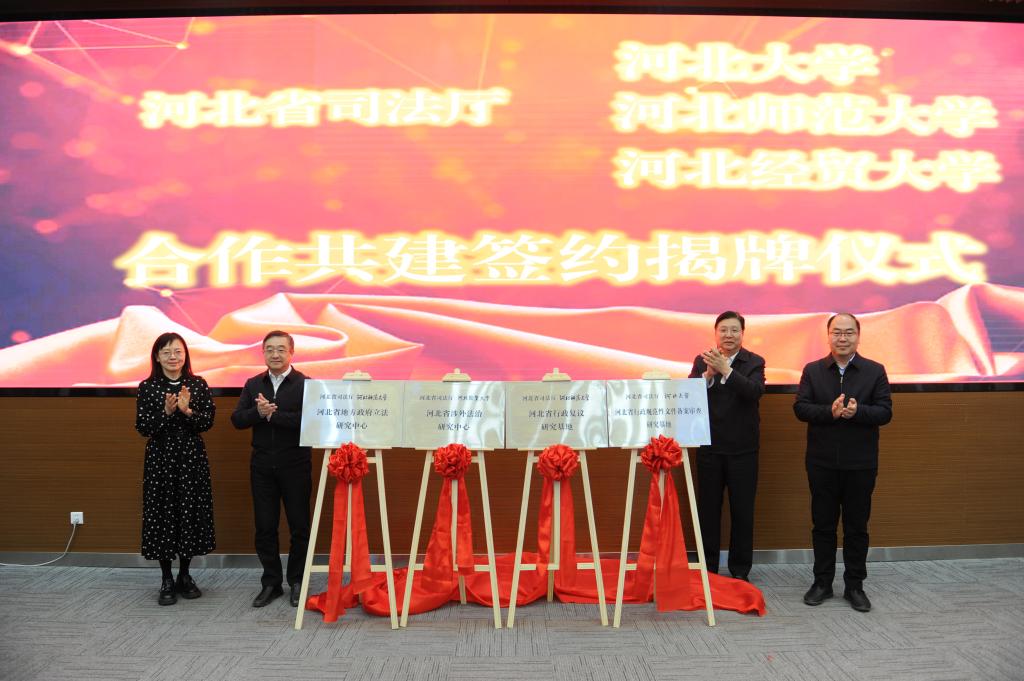 近日,河北省司法厅与省内三所高校共建法治研究基地(中心)签约暨揭牌仪式在石家庄举行。必赢国际437官方与省司法厅签约共建“河北省涉外法治研究中心”,省司法厅党委书记、厅长冯韶慧和我校副校长杜红梅共同为基地(中心)揭牌。