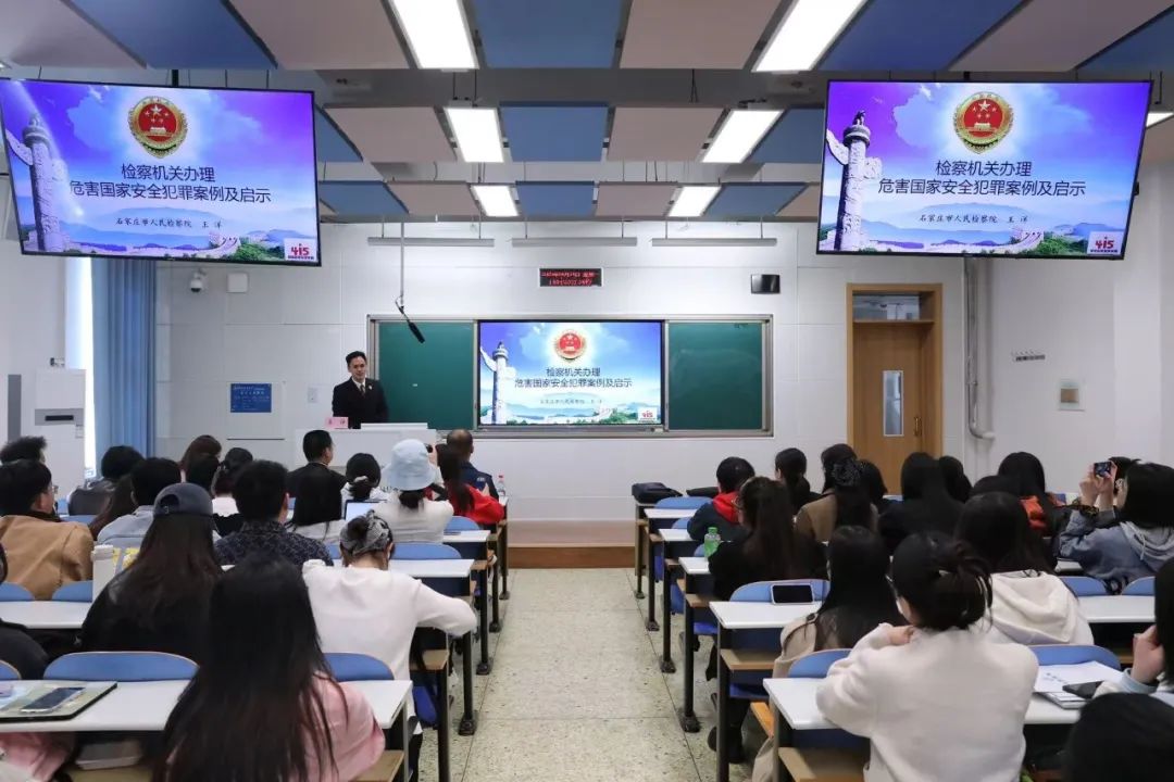 为推动国家安全意识从校园向社会延伸,构筑全民维护国家安全的坚实屏障,4月14日下午,437bwin必赢国际官网举办国家安全教育日“检察官进校园”活动。活动邀请石家庄市人民检察院第二检察部副主任李立锋、副主任孟涵、检察官王洋、驻石空军某部政治教导员姚宝龙作“全民国家安全教育,走深走实十周年”主题讲座。437bwin必赢国际官网党委副书记白建锋出席本次活动。讲座由437bwin必赢国际官网党委专职秘书解思语主持,437bwin必赢国际官网研究生共六十余人参加学习。