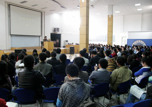 报告会上,张教授向大家详细地阐述了法理学的概念,他指出,法理学是研究法律基本问题、阐释法律现象一般原理的法学学科。同时,他还从法理学的根源、内涵和外延、研究的核心、地域性特征四个方面就法理学是什么进行了深入的分析。张教授提出,法理学的功用在于研析深层次的法律现象,开启法科学生的法律心智。因此,“法理学是什么”“法理学何为”“法理学何用”就成为了研究法理学的关键。报告会结束后,张教授认真地回答了同学们的提问,他诙谐幽默的言语、鞭辟入里的分析博得了现场观众的阵阵掌声。
