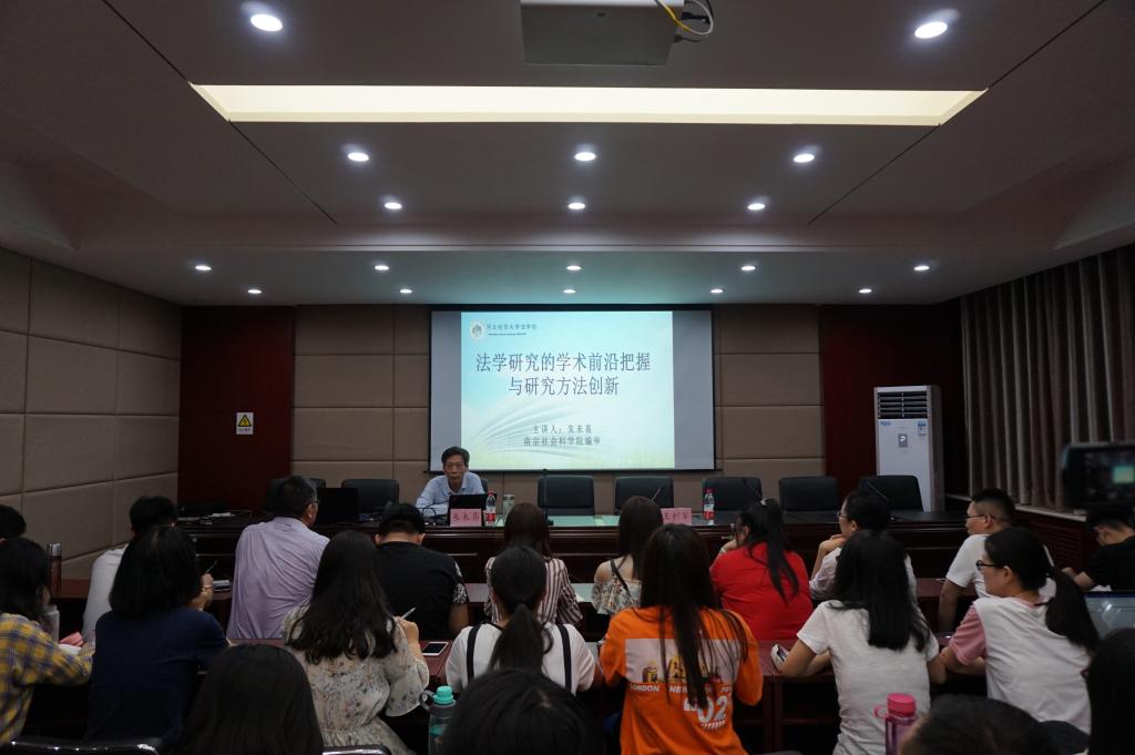 5月25日,南京社会科学院《南京社会科学》编审朱未易应437bwin必赢国际官网邀请,在法学综合实验教学中心报告厅作题为“法学研究的学术前沿把握与研究方法创新”的学术报告。讲座由437bwin必赢国际官网院长王利军主持,80余名437bwin必赢国际官网师生参加。