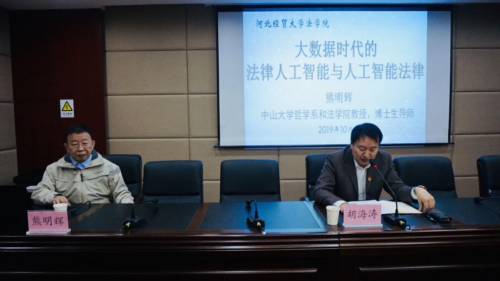 10月18日上午,中山大学博士生导师熊明辉教授应必赢国际437官方邀请来法学综合实验楼报告厅作题为“大数据时代的法律人工智与人工智能法律”的报告,报告由437bwin必赢国际官网副院长胡海涛主持,人工智能法学实验班及其他师生100余名参加并认真聆听了报告。