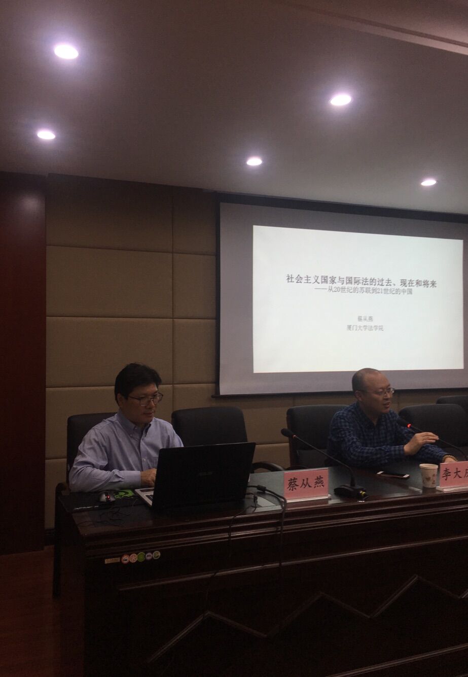 蔡从燕教授以“史密斯与伊肯伯里:谁是对的?”作为导论,抛出两种不同观点引起同学们的思考,之后阐述了社会主义国际法的要义,在正统的社会主义国际法看来,社会主义国家内部采取社会主义国际主义,而与资本主义国家则采取和平共处原则。接着蔡教授讲到了社会主义苏联与国际法,重点讲到了苏联国际法律政策的变迁是以苏共二十大为分界点,与之对应的是社会主义中国的国际法是以1978年国际法律政策为分界点,强调了在西方国家的多方面封锁与扼杀之下,社会主义法的进步和发展不易。他指出西方国家近年来的“反击”:针对中国的重大国际法律行动,其包括贸易和投资两个方面,贸易方面包括美国-加拿大-墨西哥贸易协定等,投资方面包括TPP、CFTPP等贸易协定。最后蔡从燕教授给同学们留下了一个值得深思的问题:“国际法的包容性:谁包容谁?”。相信随着国际社会和国际法的发展,这个问题的发展方向会逐渐明晰。