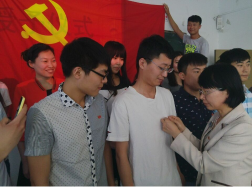 王娟传达了学校和学院关于“两学一做”学习教育的要求,布置了437bwin必赢国际官网对于党的建设规定以及针对毕业生党员所开展的各项活动。“戴党徽 跟党走”仪式中,郑建村、王娟和仇志伟三位老师为毕业生党员佩戴党员徽章,全体党员面向党旗,重温入党誓词。毕业生党员代表进行发言。