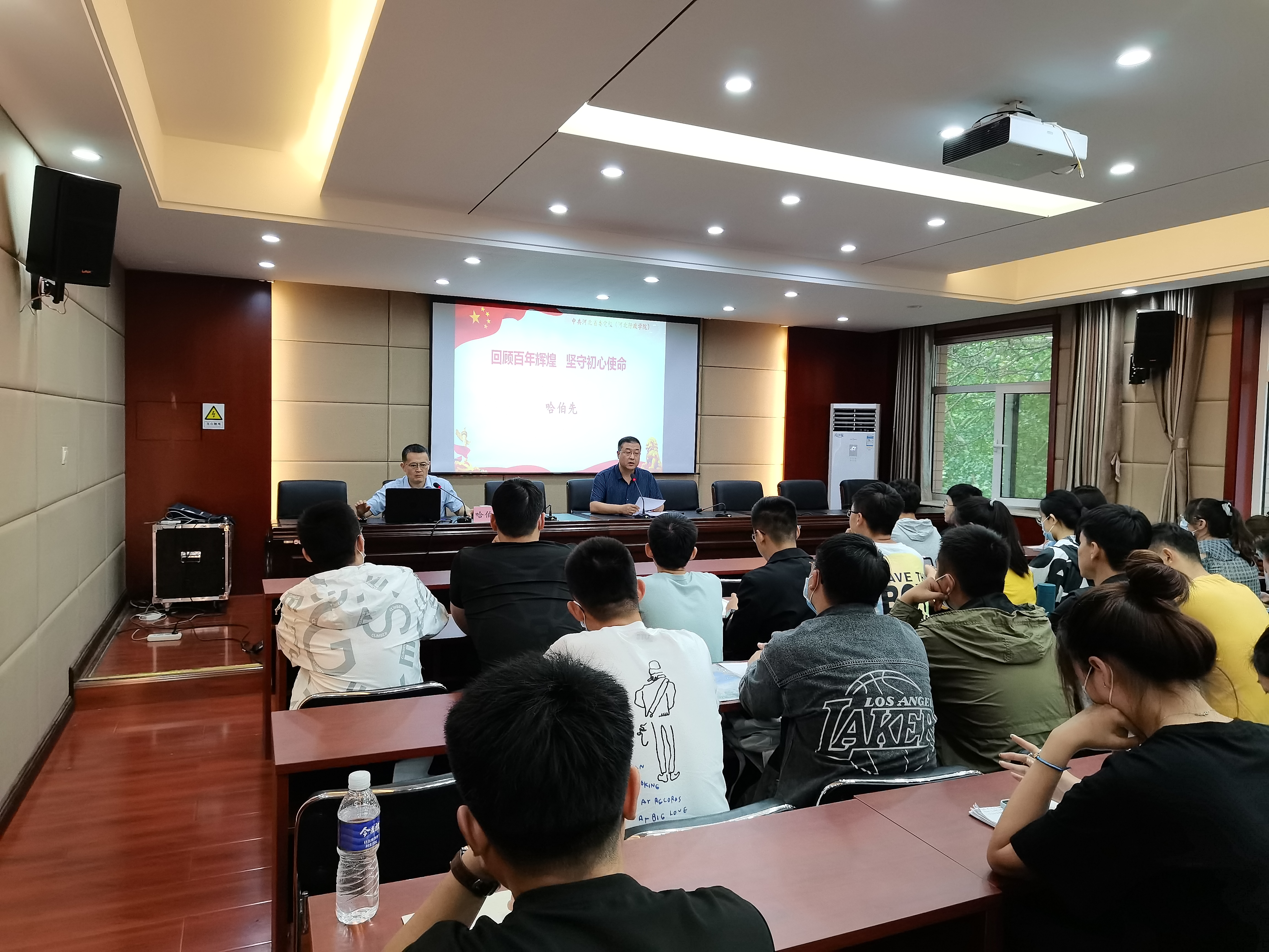 2021年9月23日下午,437bwin必赢国际官网邀请河北省委党校政治和法律教研部主任哈伯先在模拟法庭报告厅作了“回顾百年辉煌 坚守初心使命”的专题讲座。437bwin必赢国际官网80余名研究生、本科生现场聆听,讲座由437bwin必赢国际官网党委书记王继伟主持。