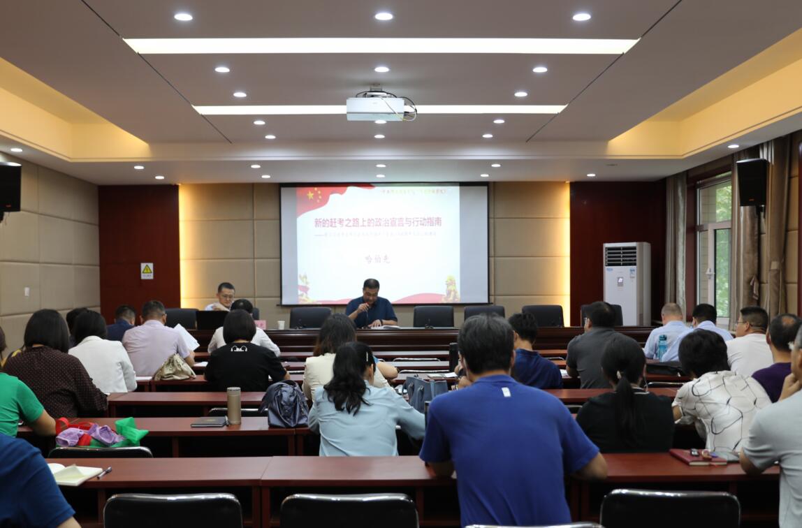 2021年9月23日下午,437bwin必赢国际官网邀请河北省委党校政治和法律教研部主任哈伯先教授在模拟法庭报告厅作了题为“新的赶考之路上的政治宣言与行动指南——学习习近平总书记在庆祝中国共产党成立100周年大会上讲话”的专题讲座。437bwin必赢国际官网全体院领导出席,60多名教职工参加,讲座由437bwin必赢国际官网党委书记王继伟主持。