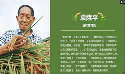 2021年5月22日,袁隆平院士逝世,举国哀悼。袁隆平院士是我国研究与发展杂交水稻的开创者,被誉为“杂交水稻之父”,在2019年被授予“共和国勋章”。王越同学说:“袁隆平院士成就与荣誉的背后,恰是假踏实地的奋斗,敢为人先的创新,鞠躬尽瘁的坚守。人们看到的袁老,总是挽着裤腿儿,下到田间的形象,袁隆平先生是一位真正的耕耘者。”袁隆平院士将活在我们每一个人心中,我们要永远缅怀我们最敬爱的袁隆平院士!