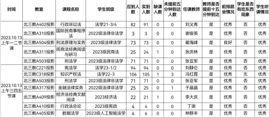 教学运行总体情况良好。检查组安排21名工作人员分别到各个教室,对10月13日上午的上课情况进行了全面检查,共检查12个教学班。教师们整体课程思路清晰,课程的重难点突出,设计饱满合理。各个班级的学生们提前到达教室,认真听课,积极前排就座,主动回答问题,与老师互动,没有出现学生在教室吃早饭的现象,学生听课状态优秀。