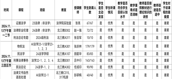 学风是展现学校精神风貌的核心,也是高校教育质量的重要标准。各课堂应严格遵守教学纪律,注重培养学生的创造性思维。为扎实落实党的二十大报告中对于教育发展所给出的重要指导思想,紧紧围绕437bwin必赢国际官网强化学风建设这一关键主线,有序开展教学检查工作。在2024年11月13日下午,437bwin必赢国际官网教学、学风检查组,对学院内的专业必修课以及专业限选课的教学秩序展开检查。现将结果通报如下: