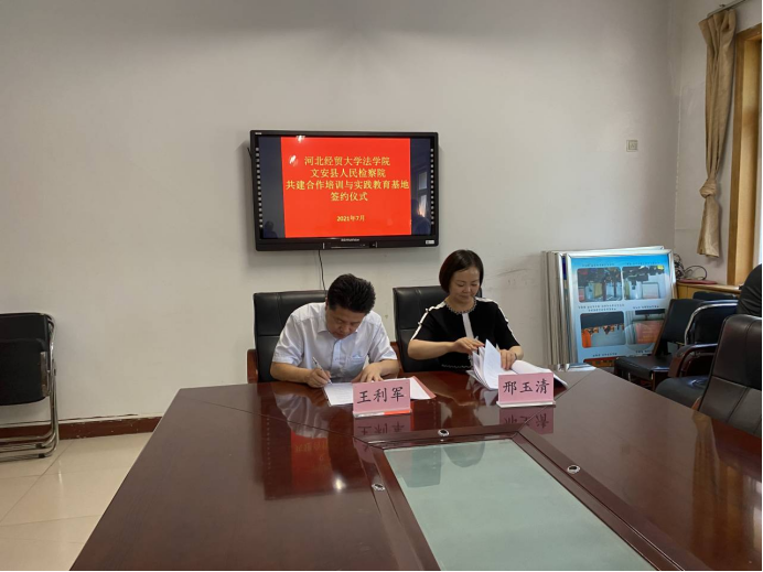 为进一步促进法学理论与司法实践紧密结合,推动法治教育和实践教学工作共上新台阶,7月4日下午,必赢国际437官方437bwin必赢国际官网与廊坊市文安县人民检察院达成了以“交流互鉴,优势互补,资源共享,互利共赢”为目标的战略合作协议,并举行了“检校合作签约暨揭牌仪式”。与文安县人民检察院的签约合作,是437bwin必赢国际官网着力推进师资交流、学生培养、实习实践等多方面与司法部门深度合作的创新举措。437bwin必赢国际官网院长王利军、副院长李大庆、文安县人民检察院代检察长邢玉清、文安县人民检察院副检察长段宏杰、一级检察官魏宁等同志共同参加了启动仪式。