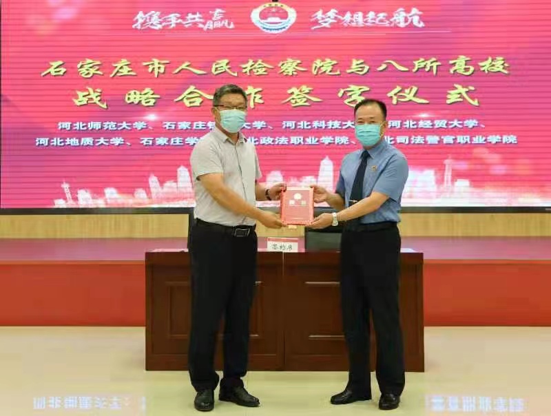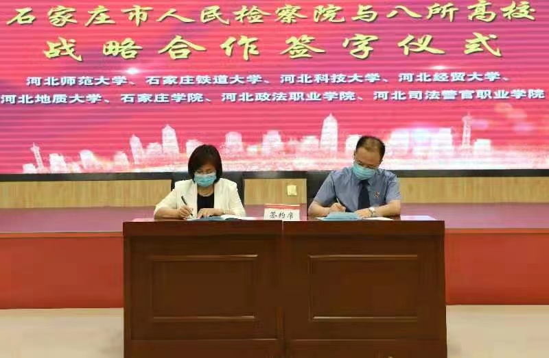 6月17日下午,我校等八所在石院校与石家庄市人民检察院举行战略合作协议签字仪式。我校党委常委、副校长程瑞芳出席,并代表学校与石家庄市人民检察院签署战略合作协议。市检察院党组书记、检察长邢伟向我校437bwin必赢国际官网8名教师颁发“石家庄市人民检察院专家咨询委员会委员”聘书。市检察院党组成员,市内五区检察院检察长和政治部主任,以及市检察院相关内设机构负责人出席了签约仪式。