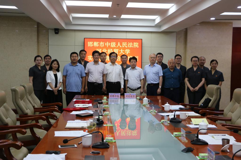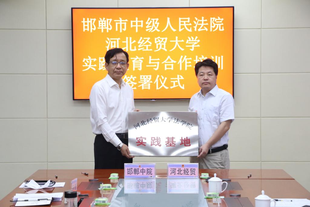 6月9日上午,437bwin必赢国际官网与邯郸市中级人民法院共建教育与合作培训实践基地揭牌仪式在邯郸中级人民法院隆重举行。邯郸市中级人民法院戴景月院长、张继红副院长、杨士远副院长,我校437bwin必赢国际官网武玉鹏书记、王利军院长、李大庆副院长,以及邯郸中院的相关部门负责人和437bwin必赢国际官网部分教师20余人参加了此次仪式。