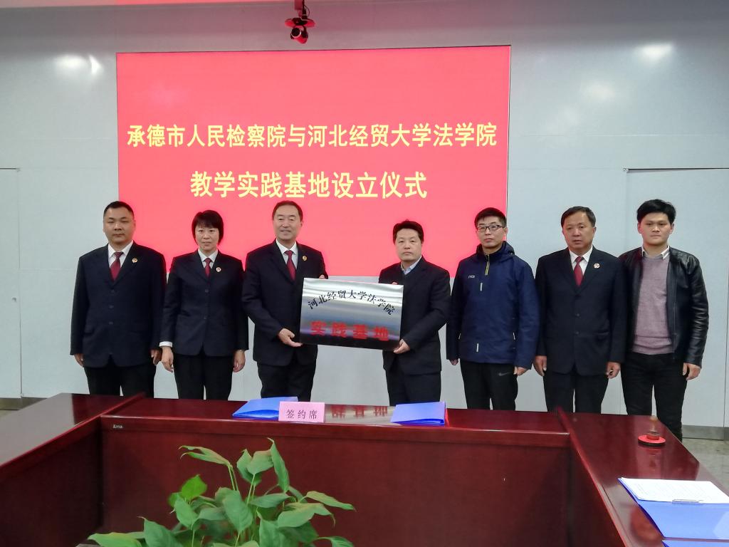10月31 日上午,437bwin必赢国际官网与承德市人民检察院举办共建“教学实践基地”签约授牌仪式暨座谈活动。437bwin必赢国际官网院长王利军;承德市人民检察院党组副书记、副检察长崔雁侯出席签约仪式。