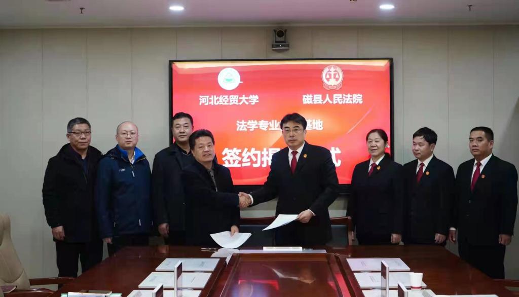 为加强人民法院与高校之间的良性互动,推进司法实务与法律教学互促共赢,1月6日,437bwin必赢国际官网与邯郸市磁县人民法院举行教学实践基地签约揭牌仪式。437bwin必赢国际官网党委书记王继伟、院长王利军、副院长李大庆、副教授张亮,磁县人民法院党组书记、院长李保雷,领导班子成员及部门相关负责人参加本次活动并座谈。