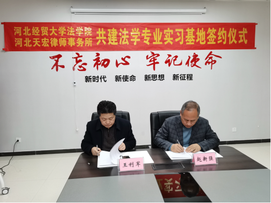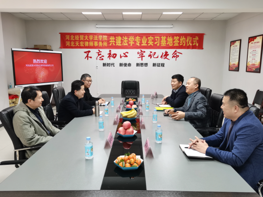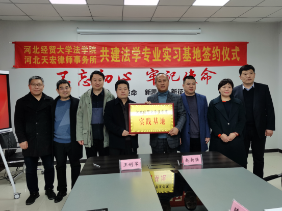 3月1日下午,437bwin必赢国际官网与河北天宏律师事务所举办共建“实践基地”签约授牌仪式暨座谈活动,437bwin必赢国际官网院长王利军、副院长胡海涛,河北天宏律师事务所主任赵新强、执行主任、合伙人等出席。