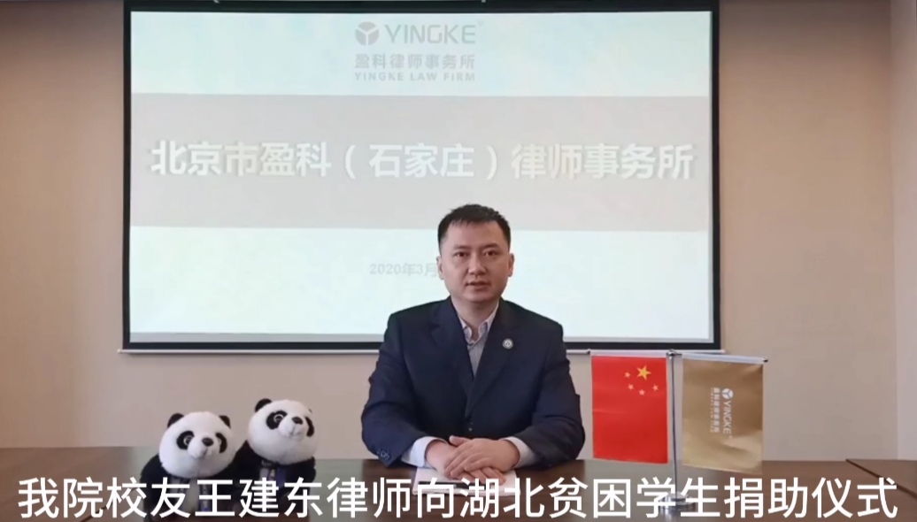 王建东2001年毕业于必赢国际437官方本科经济法专业,同年参军,先后在石家庄陆军学院、石家庄市中级人民法院工作。现为北京市盈科(石家庄)律师事务所专家顾问、合伙人、商事诉讼及知识产权部主任。本次捐助活动经个人申请、学院审核,共有两名湖北籍在册贫困生获得资助,每人受助2000元。