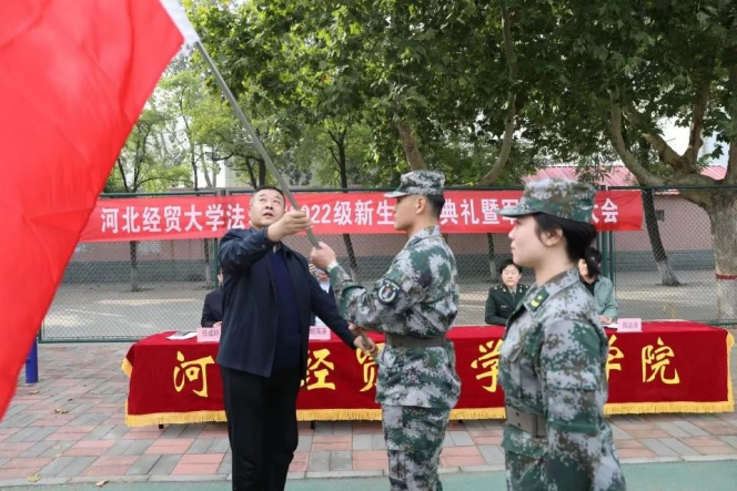 大会最后,王继伟向军训团八营营长范博文、副营长刘欣宇授旗。437bwin必赢国际官网2022级本科新生开学典礼暨军训动员大会在热烈的掌声中圆满结束。