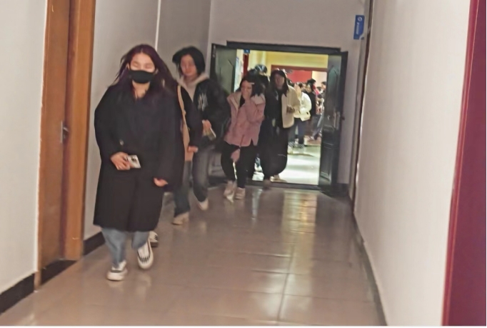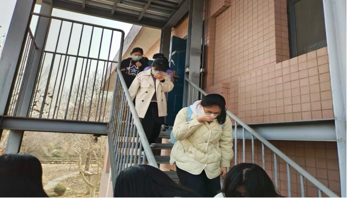 3月15日上午10时,随着警报声响起,师生反应敏捷,梁贺超老师迅速组织学生按照指定路线开始撤离。同学们在负责老师的指挥下,捂住口鼻,成一列以低姿态快速,安全地疏散至安全区域。到达安全地带后,老师立即清点人数,确保每一个学生都到达了安全地带,整个过程紧张有序。