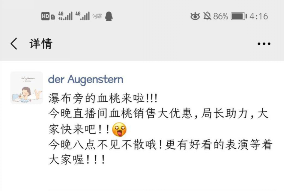 通过此次活动,宫品霄同学一行切实感受到了我党对于贫困地区人民生活的高度重视,也体会到了现代科技的强大力量。通过此次直播带货,不仅解决了当地桃子卖不出,没人买的难题,还使石林血桃的名气 大大提升,截止调研结束时,成交量已经达到2000单,并且持续增长。