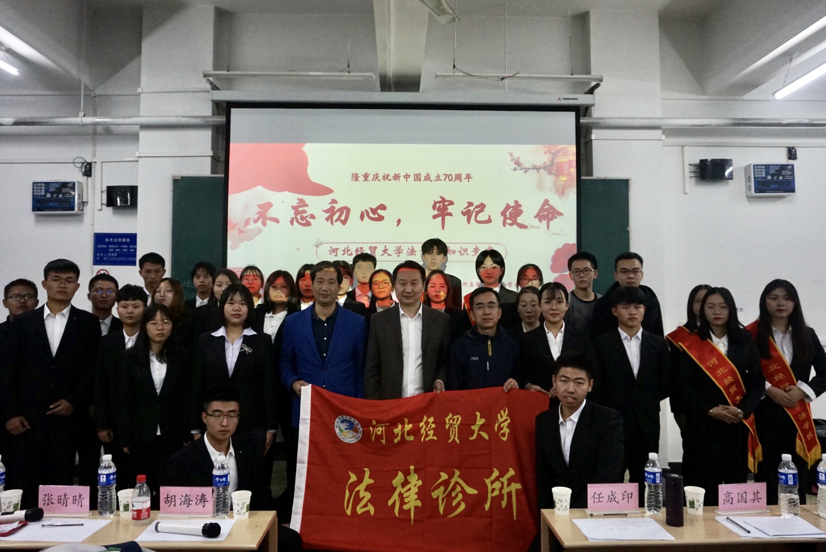 2019101314日晚,437bwin必赢国际官网团委学生会与法律诊所于B501教室联合举办了以“不忘初心、牢记使命”为主题的法律知识竞赛。437bwin必赢国际官网副院长胡海涛,任成印老师,高国其老师与以及大一大二年级各班代表100余人参加