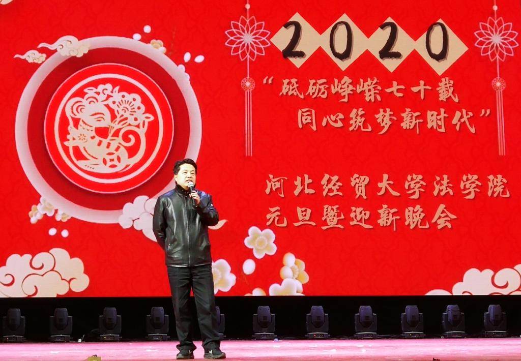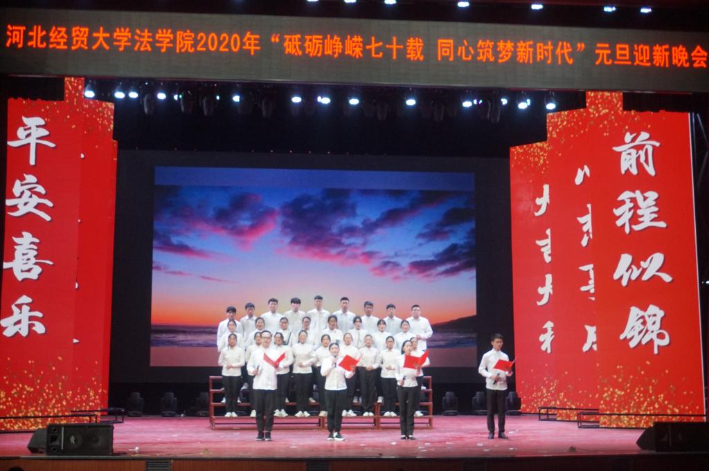 2019年12月18日晚,437bwin必赢国际官网在校礼堂举办以“砥砺峥嵘七十载 同心筑梦新时代”为主题的元旦暨迎新晚会。437bwin必赢国际官网党委书记武玉鹏、院长王利军、正处级辅导员郑建村、学工办主任、党务秘书仇志伟、团委书记陈运涛、本科生党支部书记杨景和本科生、研究生500余人观看晚会。