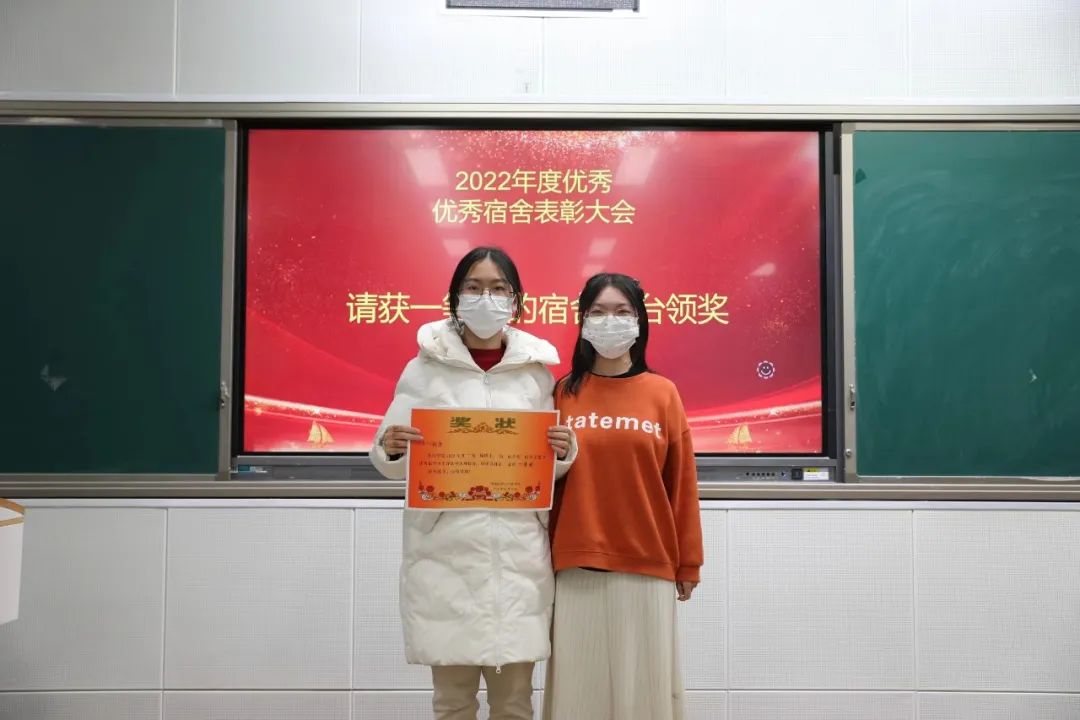 宿舍美化大赛一等奖获奖宿舍9栋405宿舍代表及宿舍卫生评比一等奖获奖宿舍2栋408宿舍代表上台发言。她们将获奖的宝贵经验分享给大家,提出在日常生活中,宿舍全体成员团结一致、分工协作,端正态度才能共同把宿舍建设好。