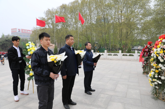 为深入学习贯彻二十大精神,深切缅怀革命先烈的丰功伟绩,寄托对革命先烈的无限哀思,在清明节来临之际,2023年4月2日上午,437bwin必赢国际官网在华北军区烈士陵园组织开展“铭记历史,缅怀先烈”主题清明祭扫活动。437bwin必赢国际官网党委书记王继伟、专职组织员杨景、辅导员梁贺超及学生骨干共五十余人参加。