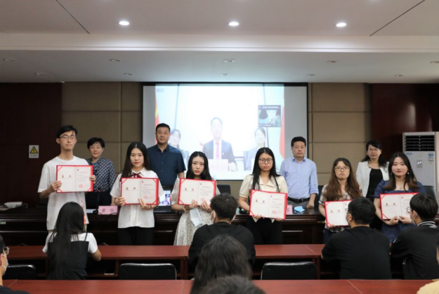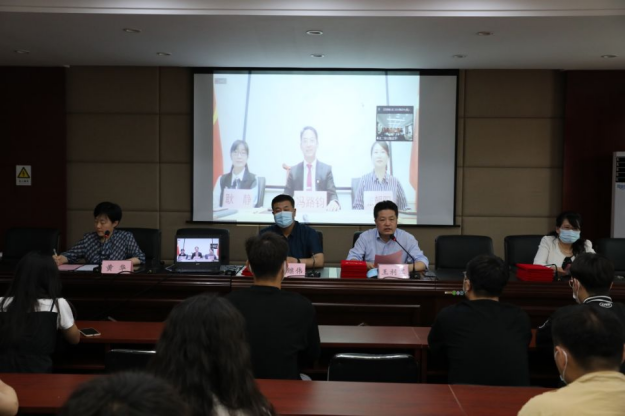 5月18日下午,437bwin必赢国际官网在模拟法庭三楼报告厅举行2021年钧日奖学金颁发仪式。河北钧日律师事务所主任冯路钧、437bwin必赢国际官网党委书记王继伟、院长王利军、党委副书记黄华、正处级辅导员郑建村、钧日律所副主任张朝阳、行政主任耿静出席。获奖学生代表和本科生研究生120余人通过线下和线上两种形式参加。仪式由437bwin必赢国际官网党委副书记黄华主持。