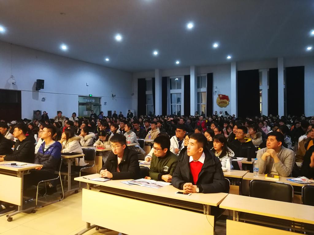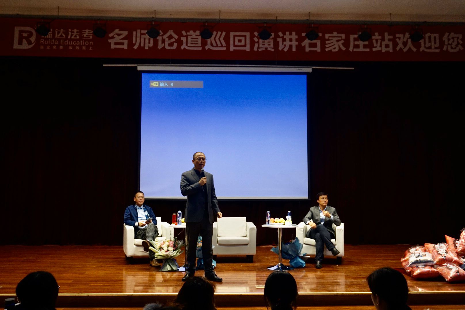 2 0 1 9年1 2月3日晚,由必赢国际437官方和瑞达教育联合举办的“名师论道”法考专题讲座于大学生活动中心展开,437bwin必赢国际官网团委书记陈运涛老师、瑞达教育北方区校长杨宁、瑞达教育石家庄分校校长郭立兵、三位主讲老师蔡雅奇、宋光明、钟秀勇出席,来自我校437bwin必赢国际官网、石家庄铁道大学、河北师范大学的法学生500多人参加。