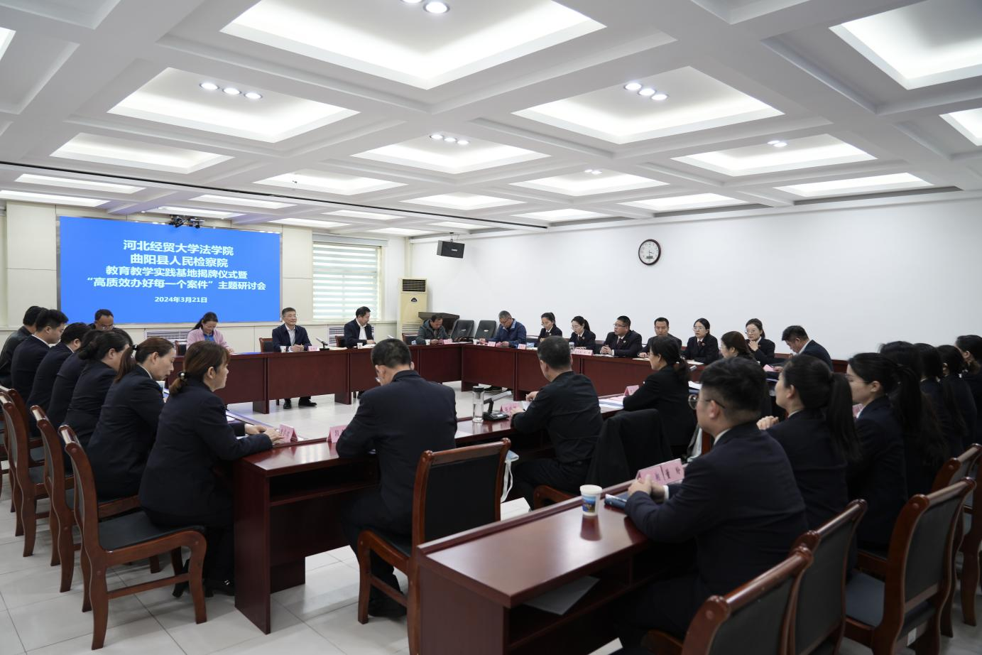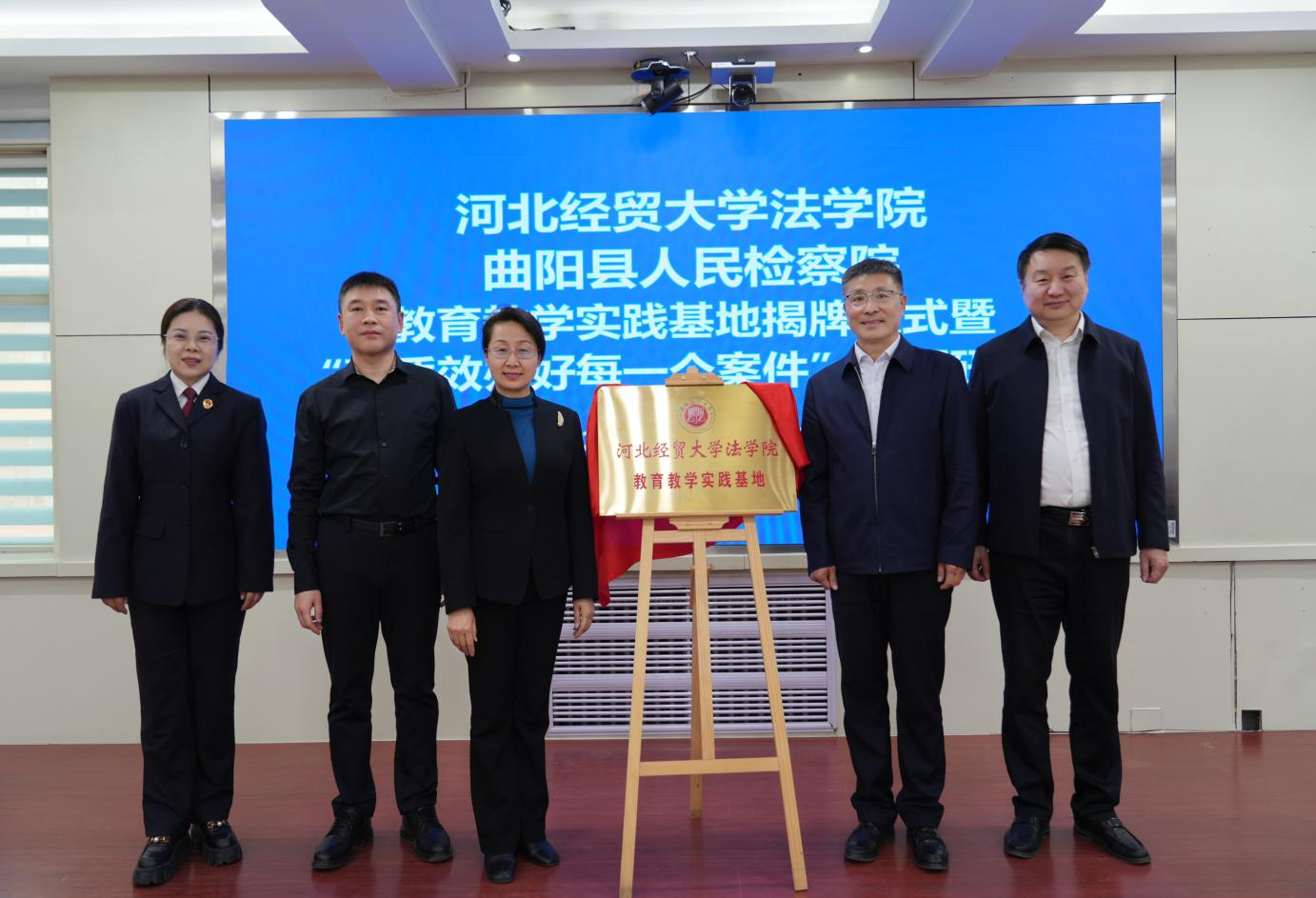 3月21号下午,437bwin必赢国际官网与曲阳县人民检察院教育教学实践基地揭牌仪式在曲阳检察院举行。校党委常委、副校长高晓峰,保定市检察院检委会专职委员田文利,曲阳县政法委书记张晓辉,曲阳县检察院党组书记、检察长史明巍,437bwin必赢国际官网相关负责人和曲阳县我校驻村干部代表,曲阳县检察院班子成员、干警代表参加活动。