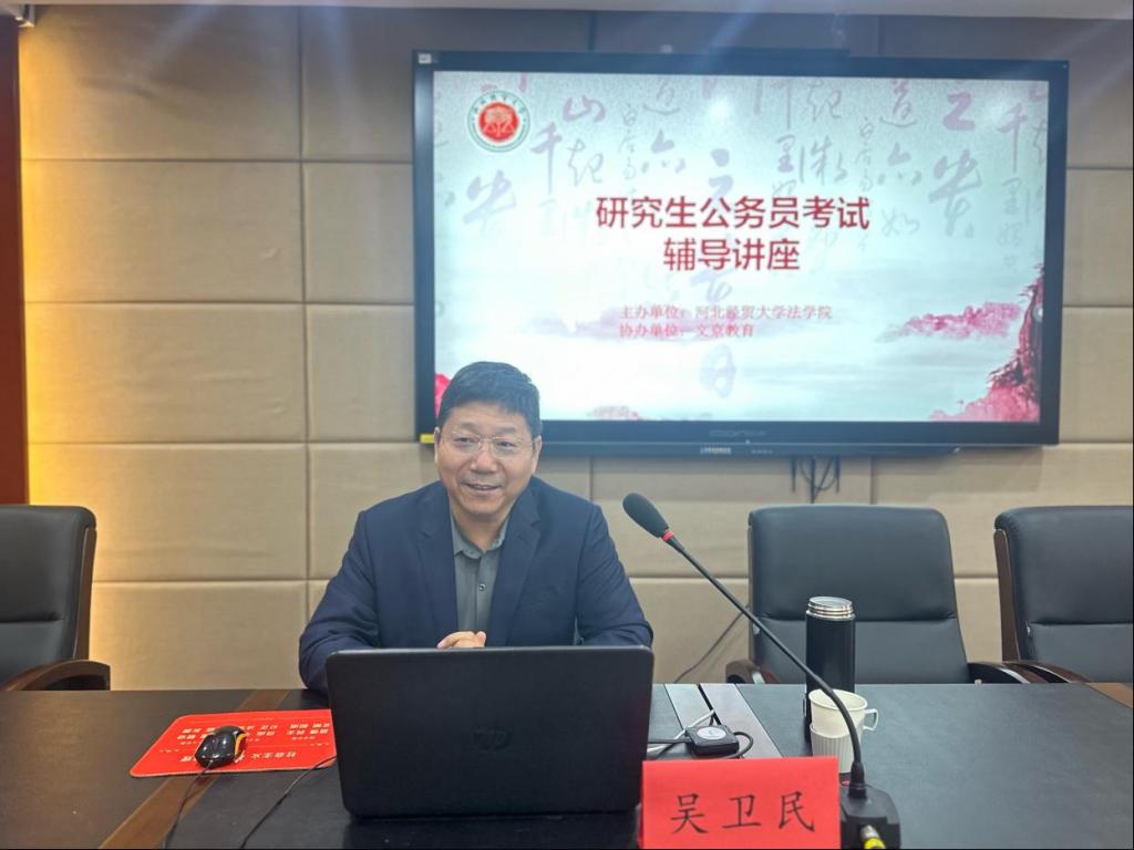 4月1日下午,437bwin必赢国际官网邀请文京教育首席公考专家吴卫民于学院三楼学术报告厅做研究生公务员考试专题辅导讲座。讲座由学院学生工作办公室主任陈运涛主持,80余名研究生参加。