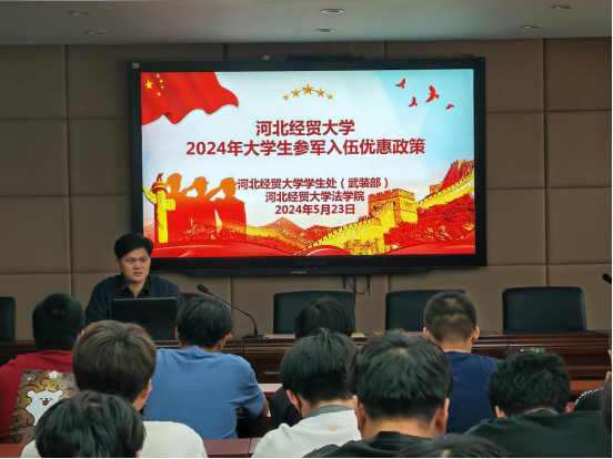 5月23日,437bwin必赢国际官网于三楼学术报告厅举办2024年大学生参军入伍政策宣讲暨优秀退役复学学生报告会。437bwin必赢国际官网学生工作办公室主任陈运涛、退役复学学生代表陈英及七十余名本科生参与本次活动。
