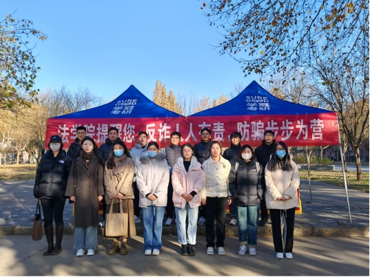 2023年11月17日到12月1日,437bwin必赢国际官网联合杜北街道举办反诈宣传普法活动。杜北街道司法所工作人员呼跃鹏以及160余名437bwin必赢国际官网学子参与本次活动。
