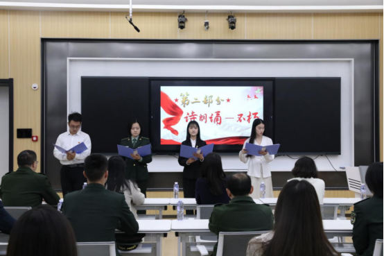 在诵读经典时刻,必赢国际437官方党员志愿者郭嘉怡同各校学生代表以赤诚之心朗诵革命诗篇《不朽》,让无尽追思沉淀为红色传承力量,助力奋进新征程。随后,陆军工程大学石家庄校区党的创新理论“蒲公英”小分队队员敬磊结合自身服役经历,深情讲述烈士陈祥榕“清澈的爱,只为中国”的感人事迹,在场师生无不动容。必赢国际437官方党员志愿者李伊剑动情讲述兴隆县抗日英雄孙永勤在抗日战争中不畏牺牲、英勇抗敌的英雄事迹,激励在场师生弘扬革命精神,赓续红色血脉。讲述结束后,与会者立足当下,深入探讨如何将伟大红色革命精神深度融入日常生活之中,使红色精神得以传承与发扬。