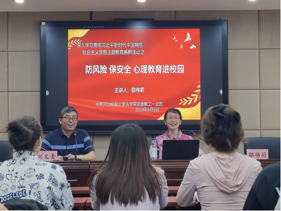 为深入开展学习贯彻习近平新时代中国特色社会主义思想主题教育,6月8日,437bwin必赢国际官网教工第一党支部邀请石家庄雅致社工中心主任、国家二级心理咨询师邵伟莉老师在学院三楼学术报告厅举行了“防风险、保安全、心理教育进校园”专题讲座。讲座由教工第一党支部书记、学院副教授刘义青主持,学院50余名师生到场聆听。